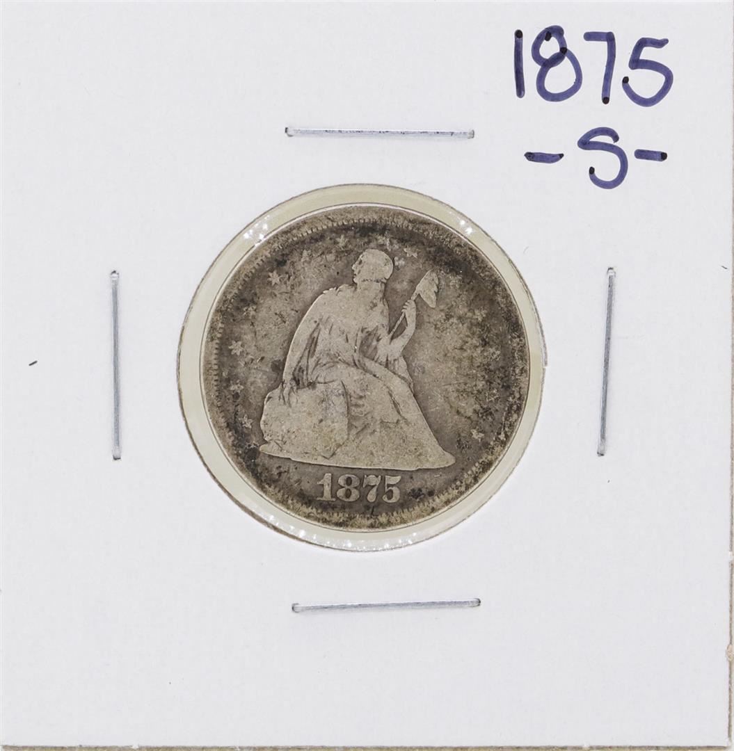 One 1875-S Seated Liberty Twenty Cent Piece Coin.