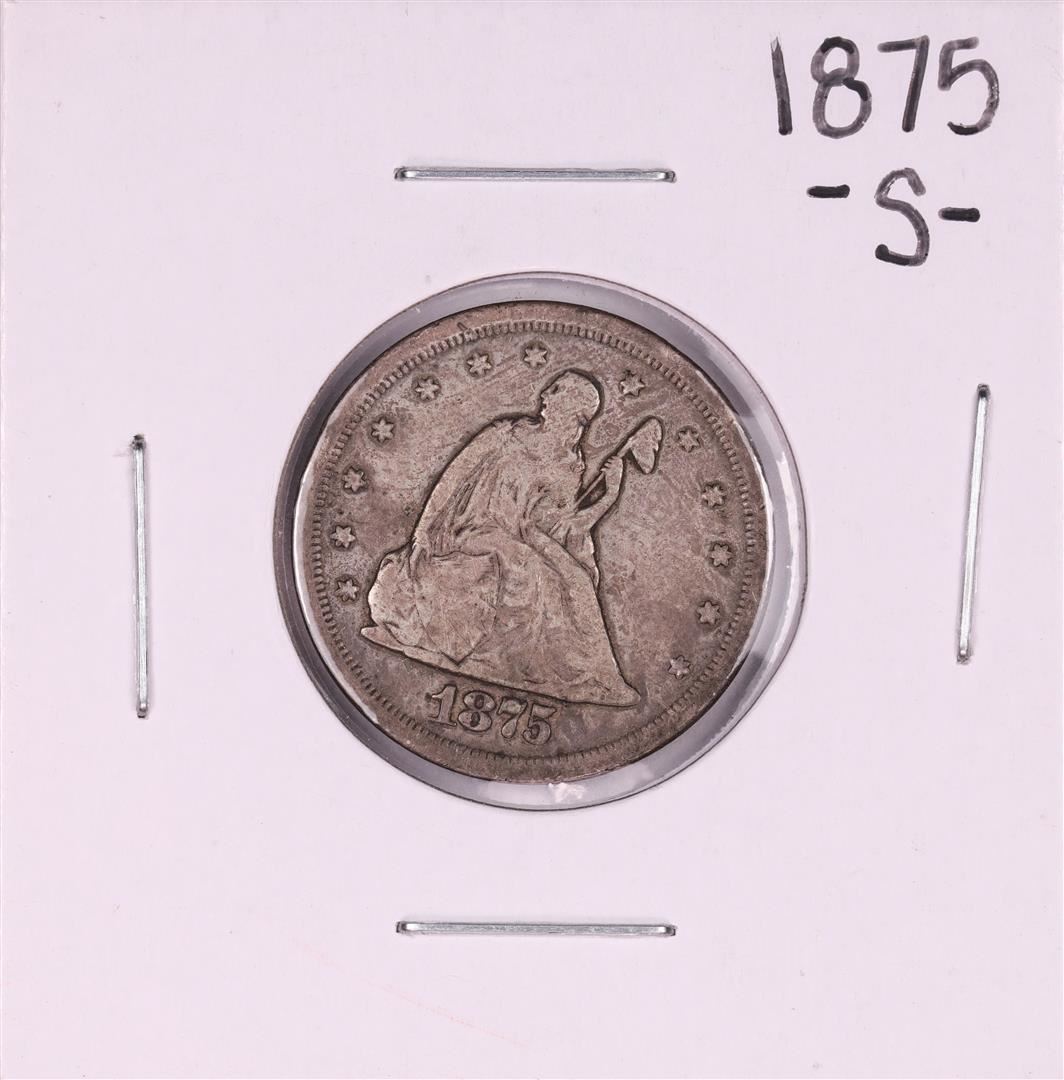 One 1875-S Seated Liberty Twenty Cent Piece Coin.