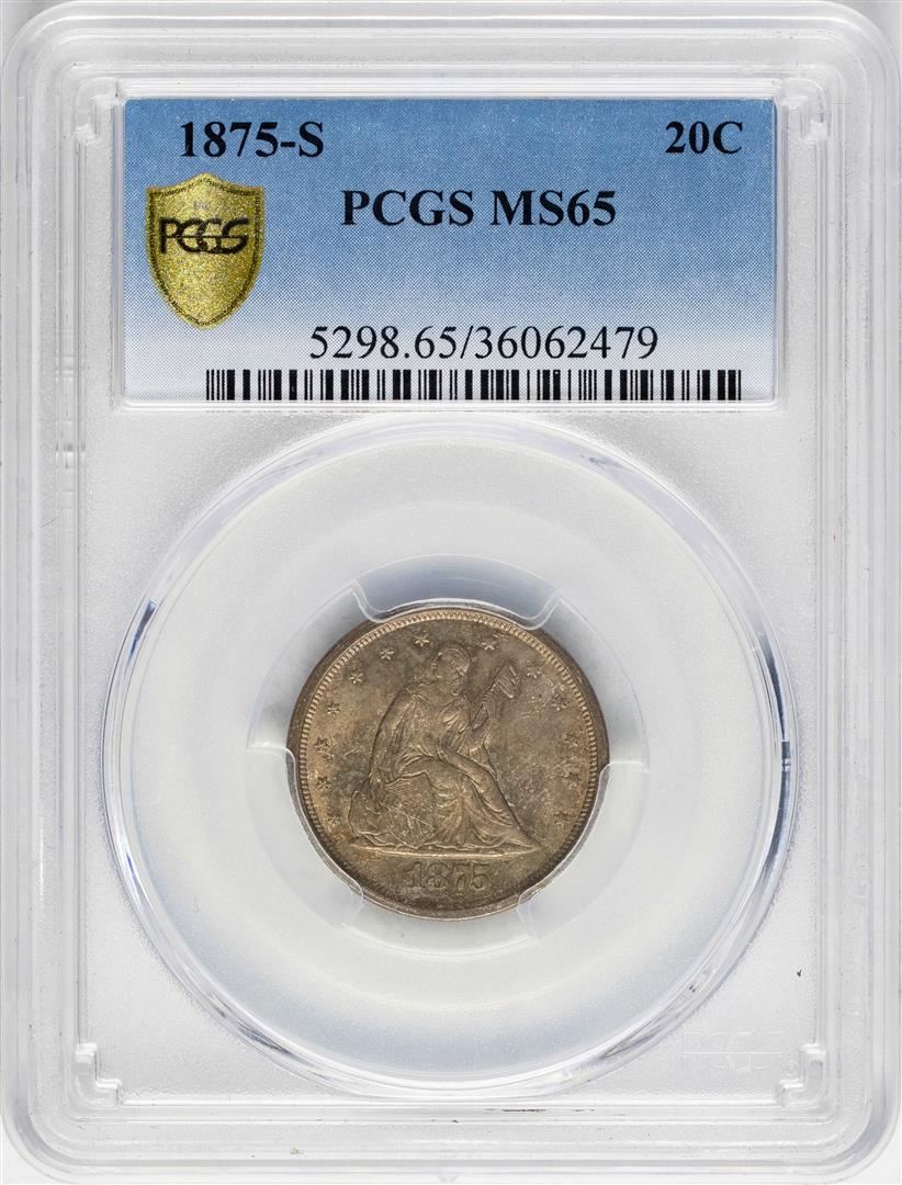 One 1875-S Twenty Cent Piece Coin PCGS MS65. PCGS Graded.