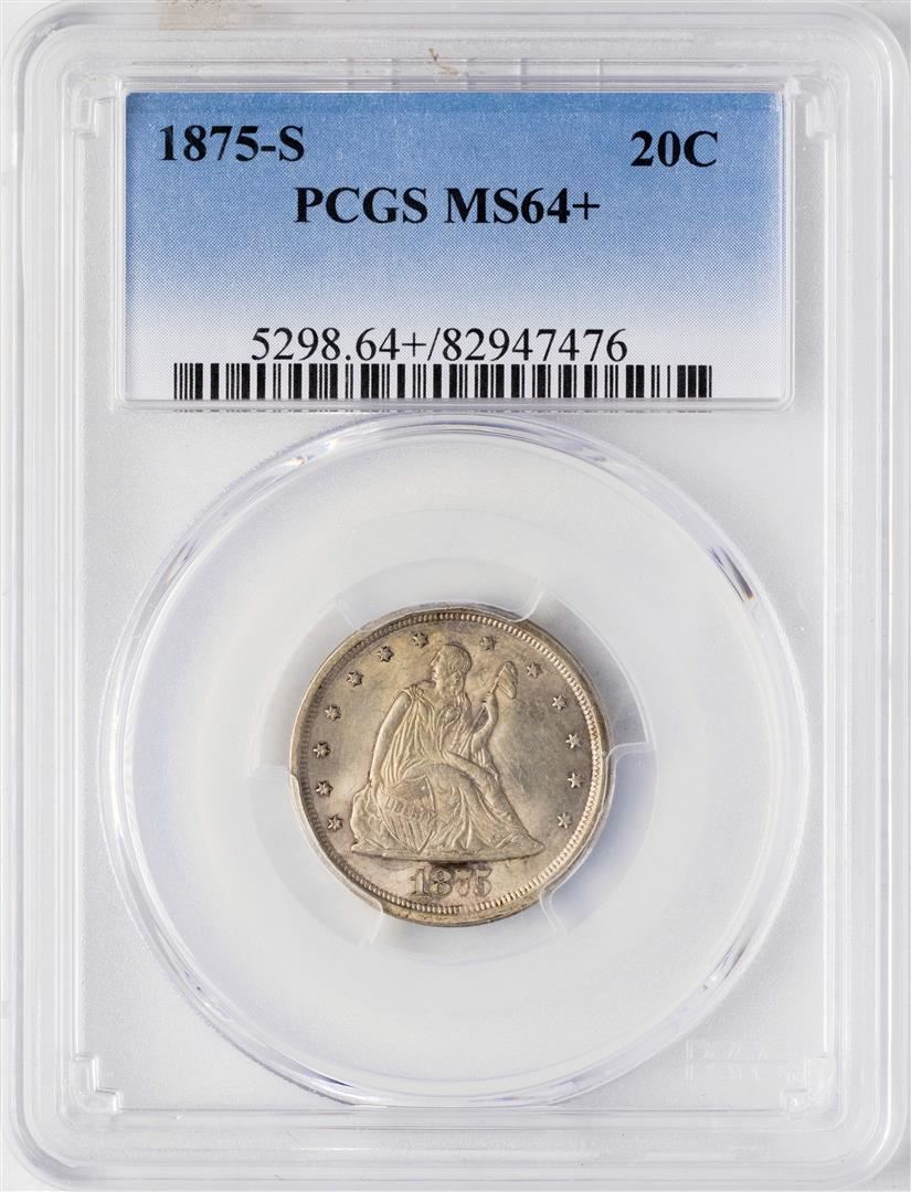 One 1875-S Twenty Cent Piece Silver Coin PCGS MS64+. PCGS Graded.