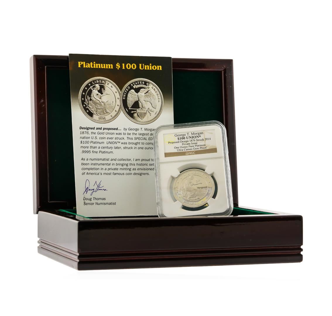 One 1876 $100 George T. Morgan Platinum Coin NGC Ultra Cameo Gem Proof. NGC Certified.