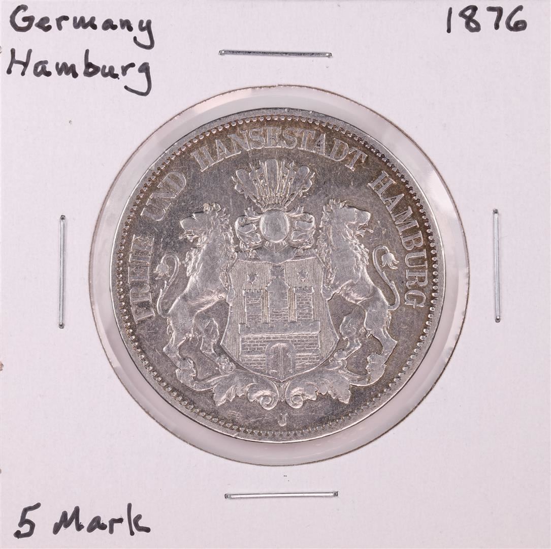 One 1876 Germany Hamburg 5 Mark Silver Coin.