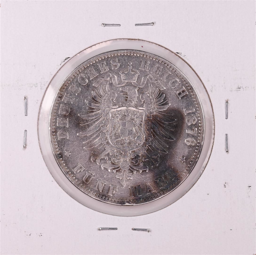 One 1876 Germany Hamburg 5 Mark Silver Coin.