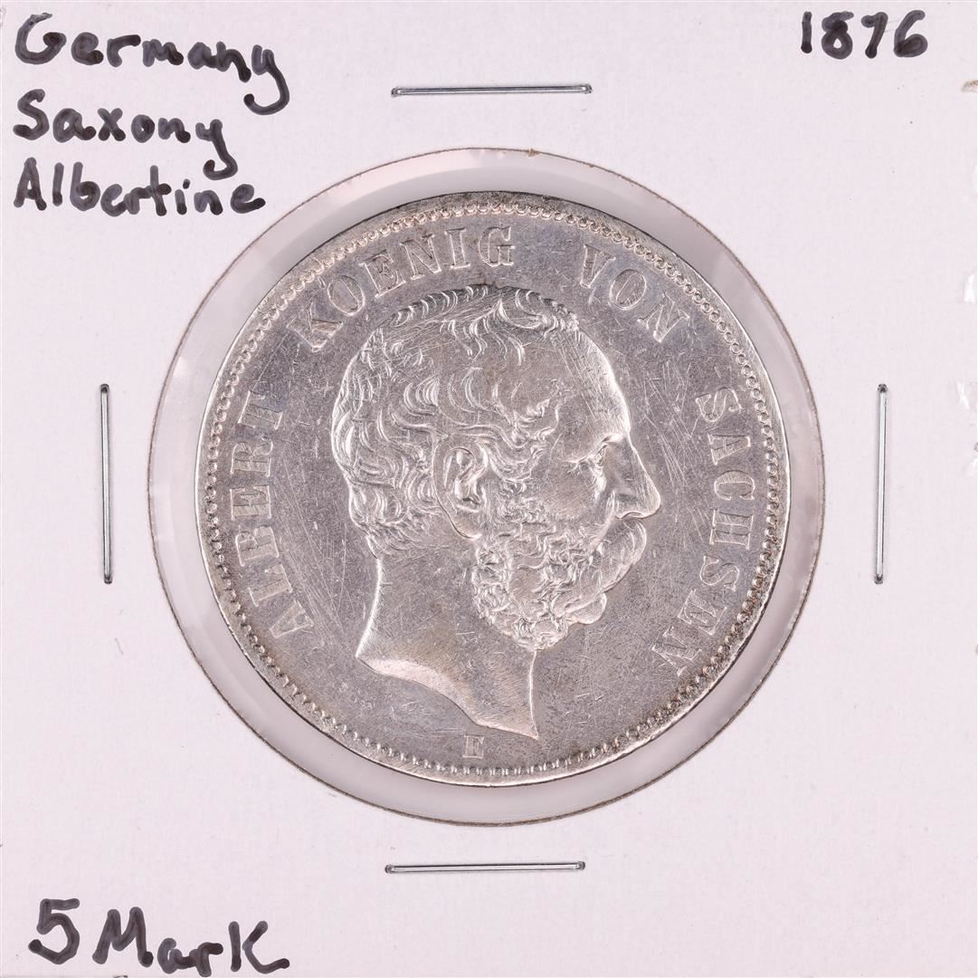 One 1876 Germany Saxony Albertine 5 Mark Silver Coin.