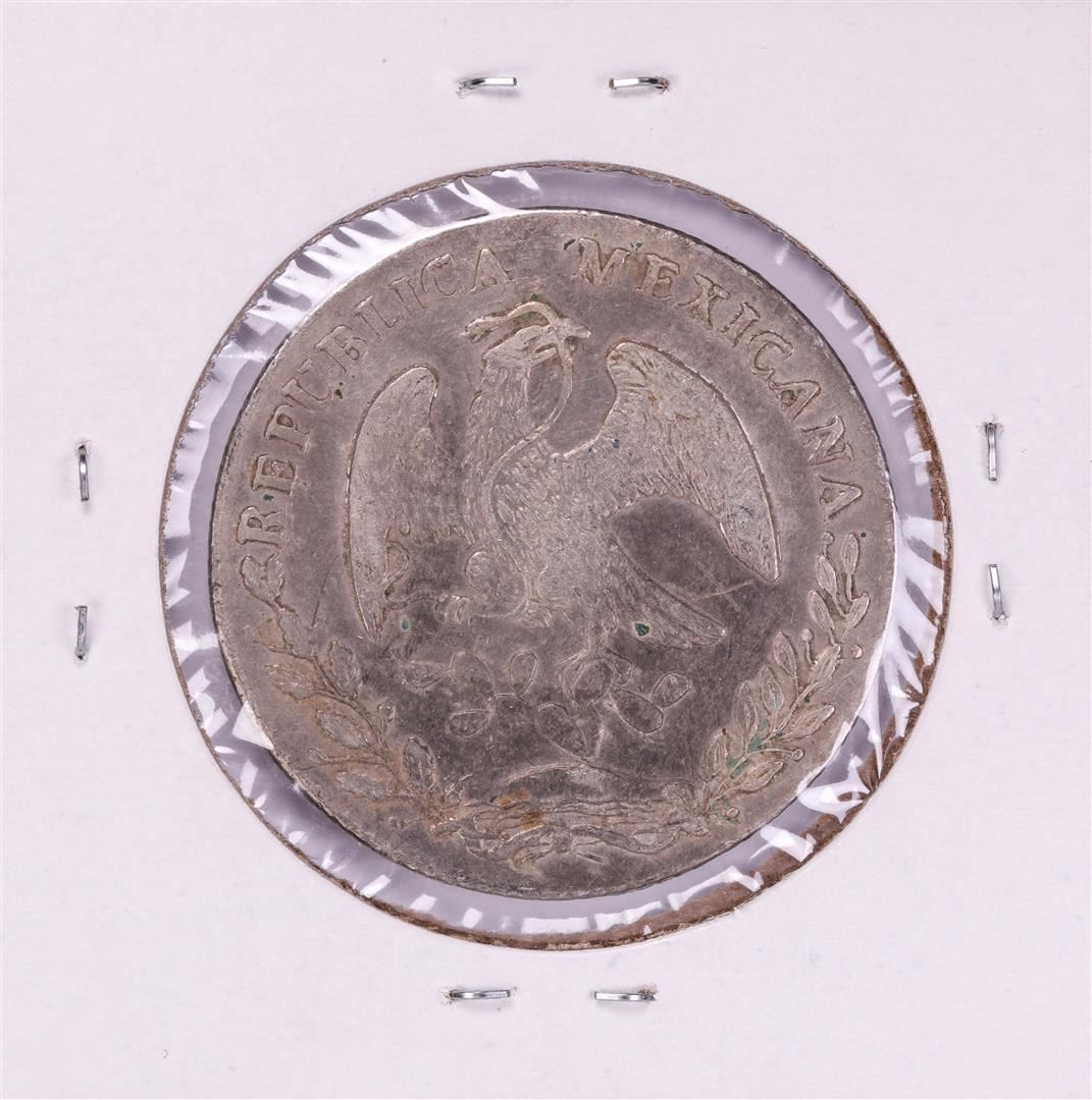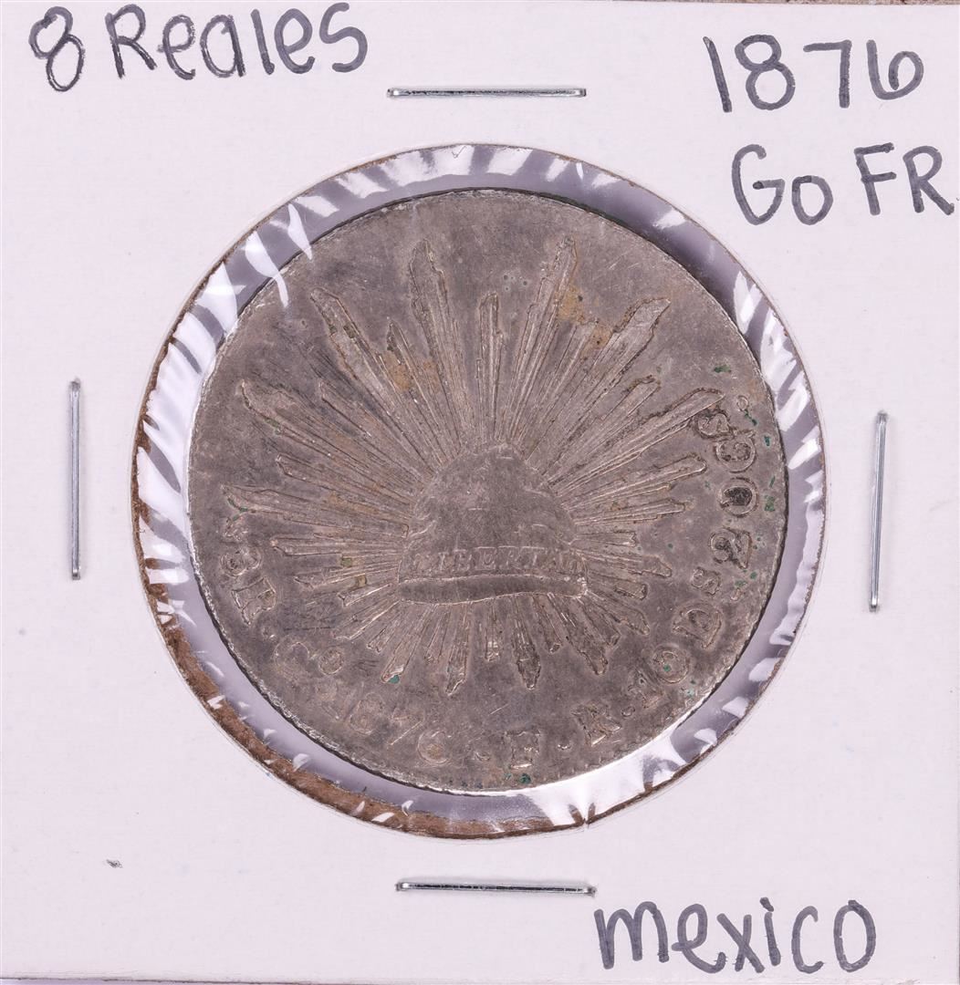 One 1876 Go FR Mexico 8 Reales Silver Coin.