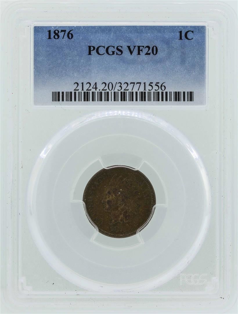 One 1876 Indian Head Cent Coin PCGS VF20. PCGS Graded.