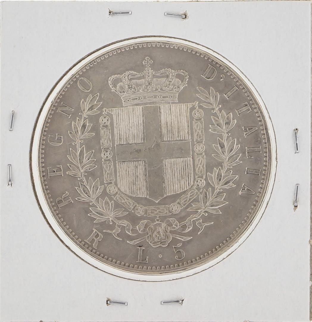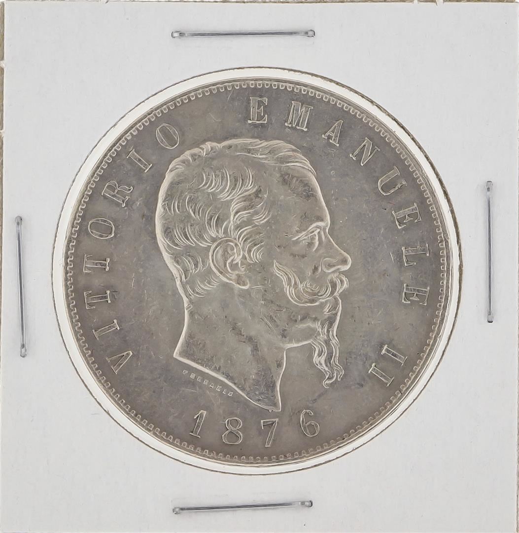 One 1876 Italy 5 Lira Silver Coin.