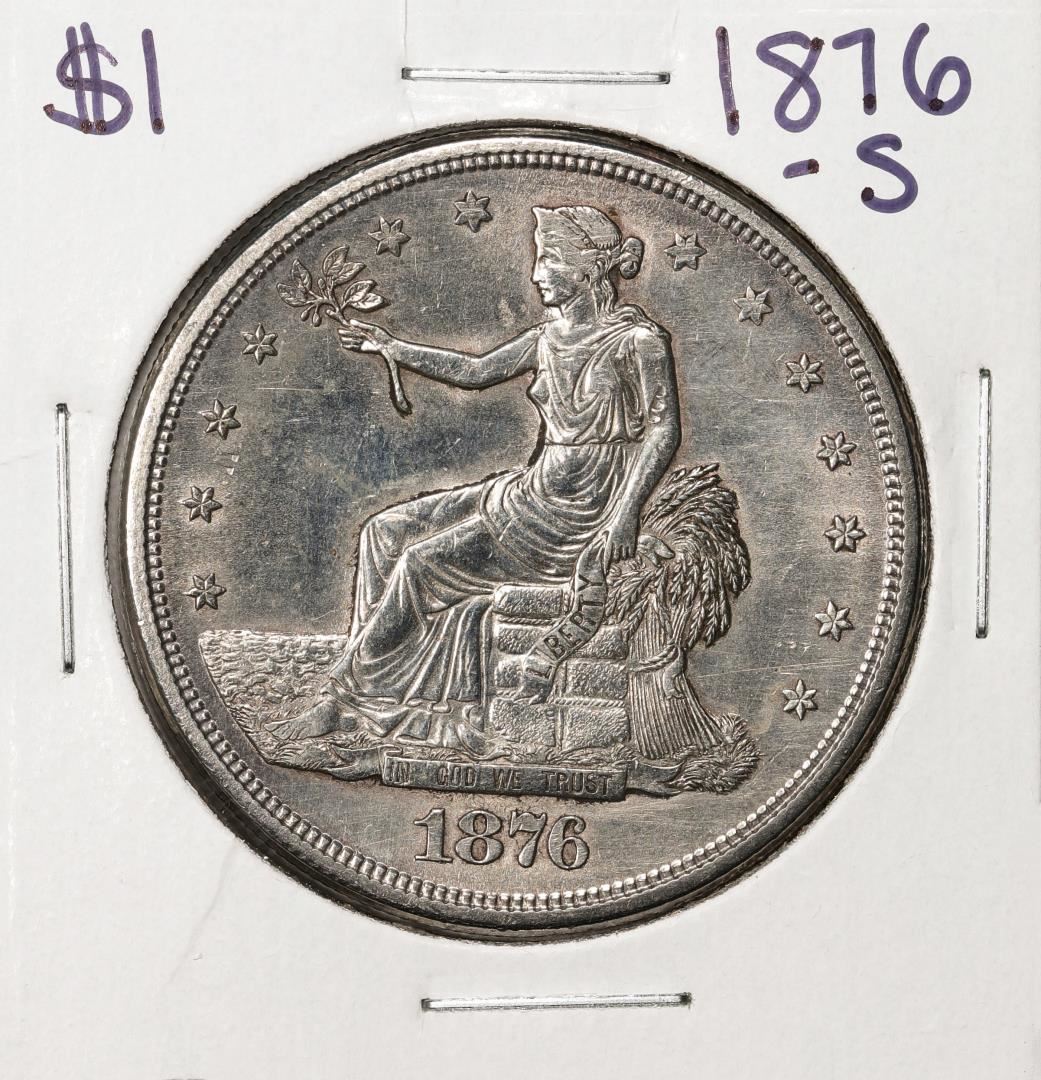One 1876-S $1 Trade Silver Dollar Coin.
