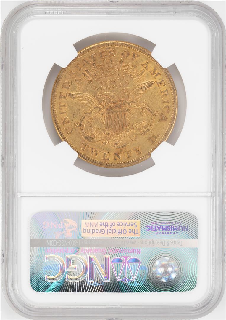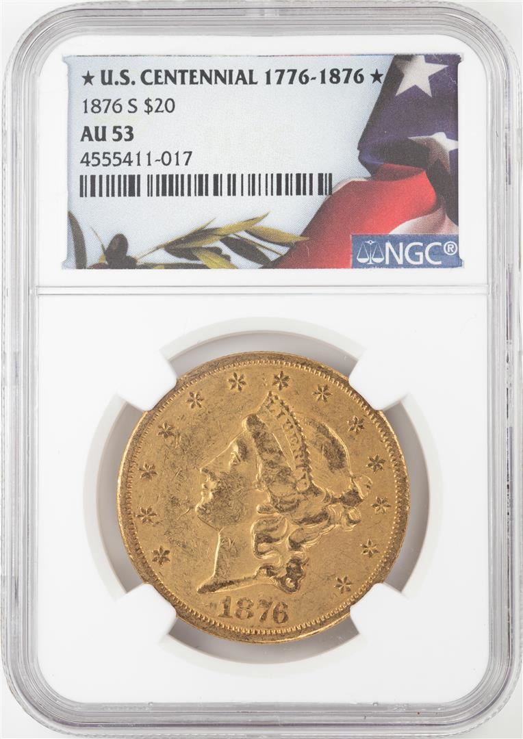 One 1876-S $20 Liberty Head Double Eagle Gold Coin NGC AU53. NGC Certified.