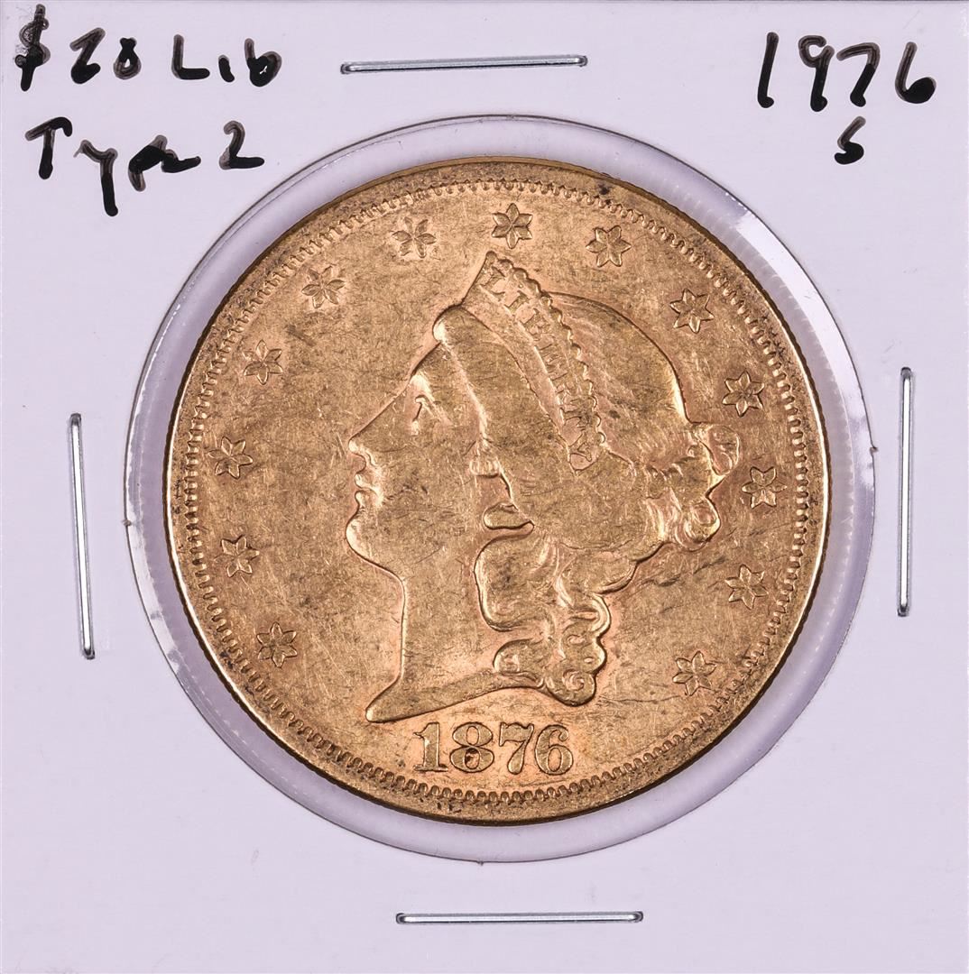 One 1876-S $20 Liberty Head Double Eagle Gold Coin.