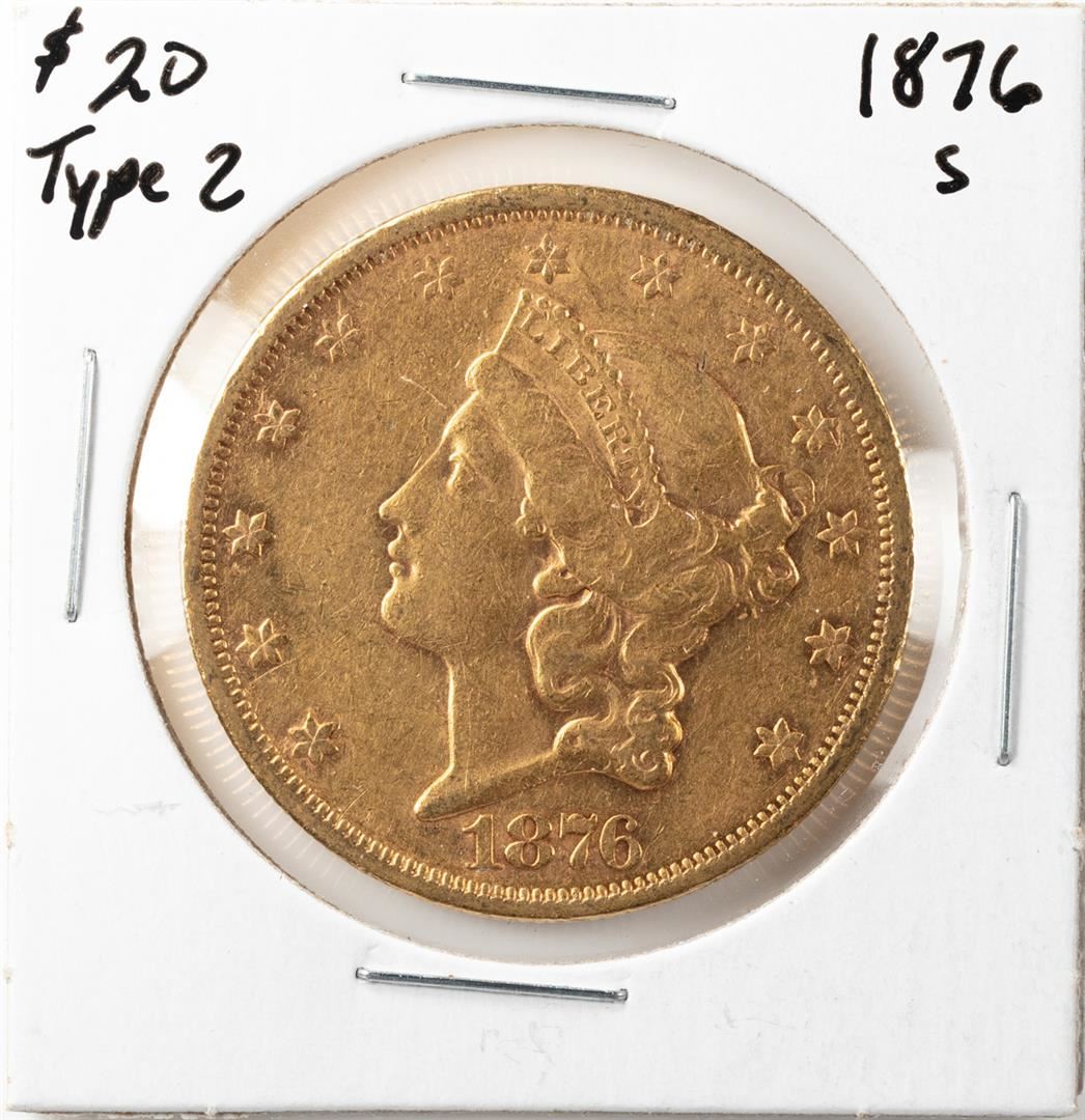 One 1876-S $20 Type 2 Liberty Head Double Eagle Gold Coin.