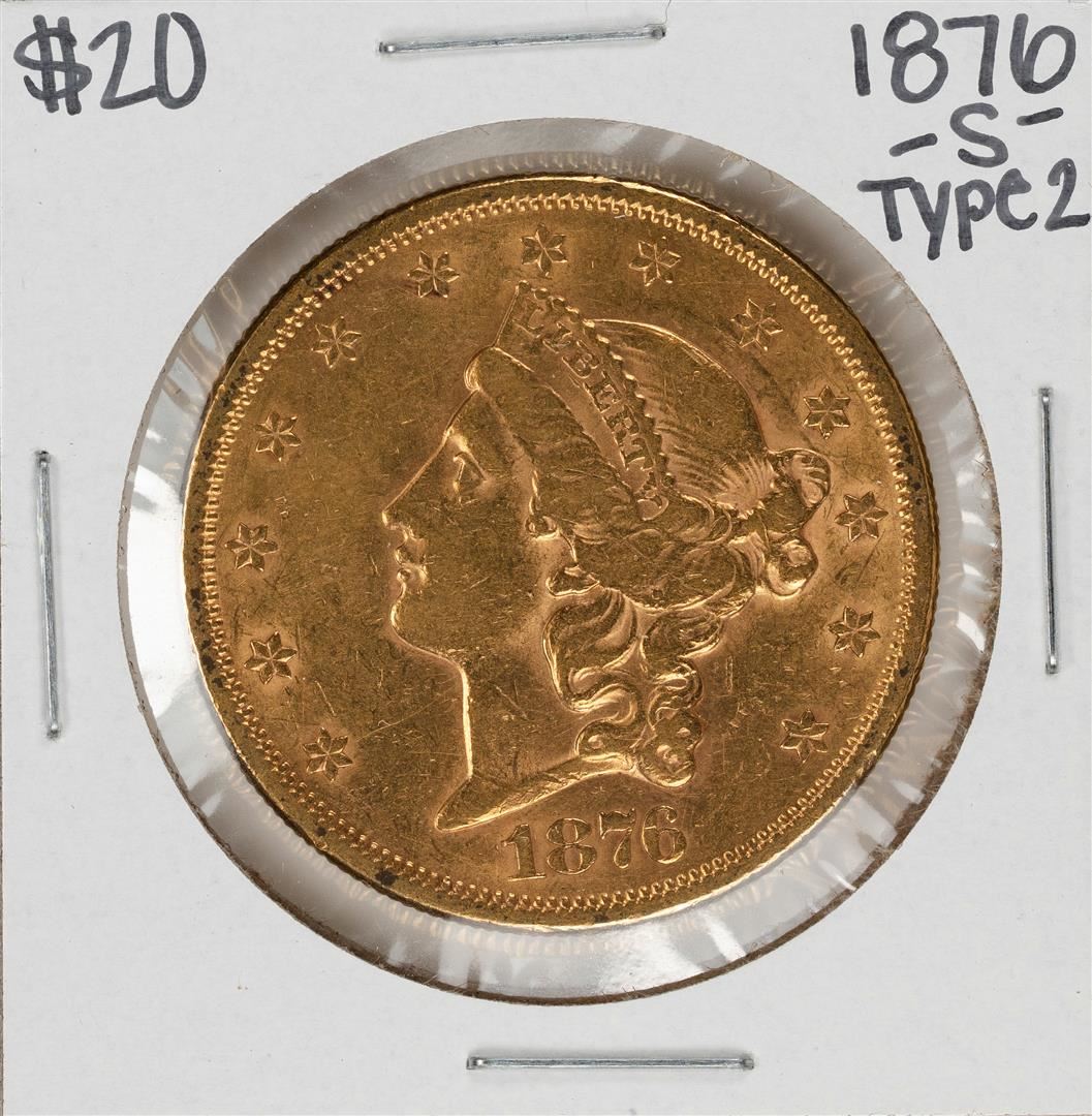 One 1876-S Type 2 $20 Liberty Head Double Eagle Gold Coin.