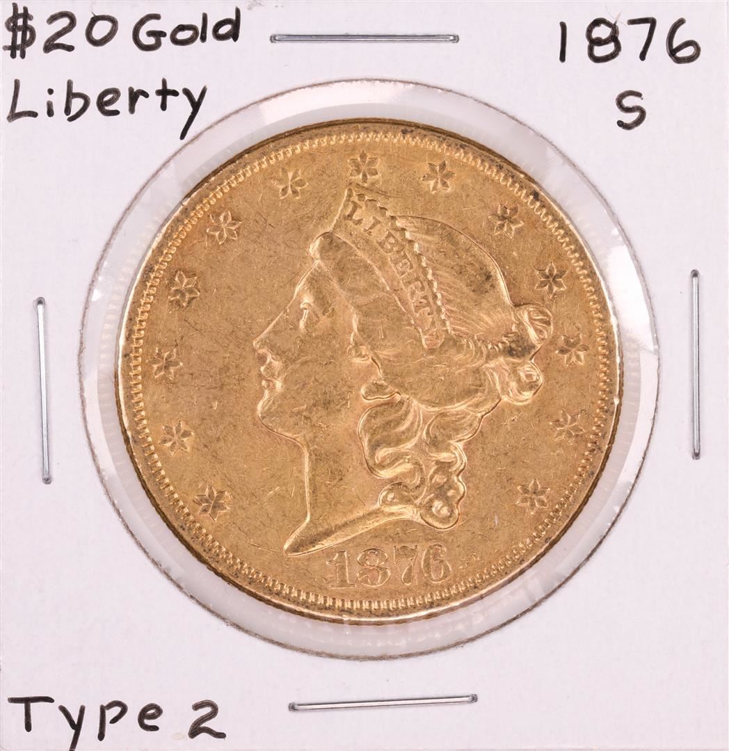 One 1876-S Type 2 $20 Liberty Head Double Eagle Gold Coin.