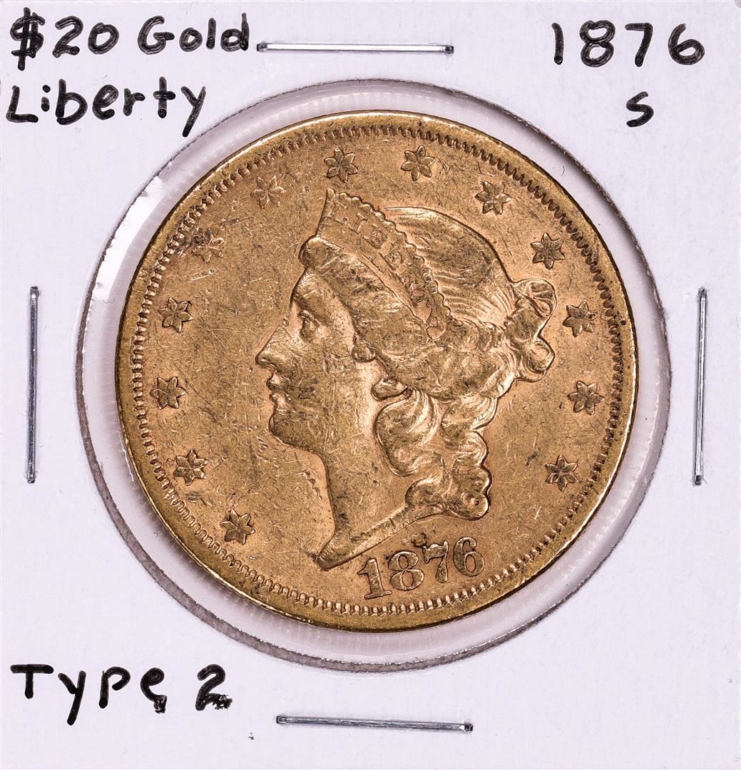 One 1876-S Type 2 $20 Liberty Head Double Eagle Gold Coin.