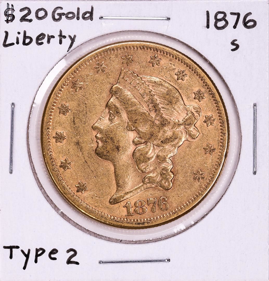One 1876-S Type 2 $20 Liberty Head Double Eagle Gold Coin.
