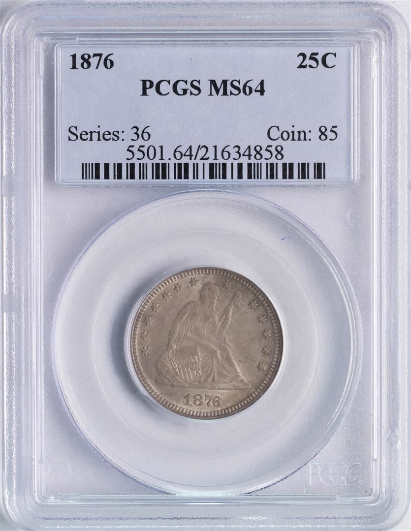 One 1876 Seated Liberty Quarter Coin PCGS MS64. PCGS Graded.