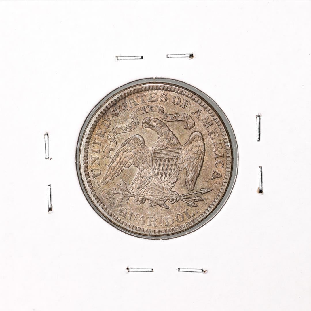 One 1876 Seated Liberty Quarter Coin.