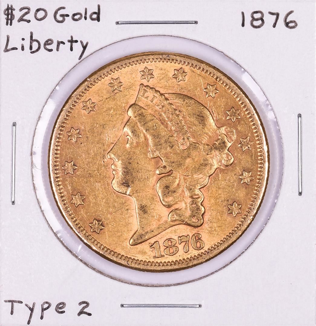 One 1876 Type 2 $20 Liberty Head Double Eagle Gold Coin.