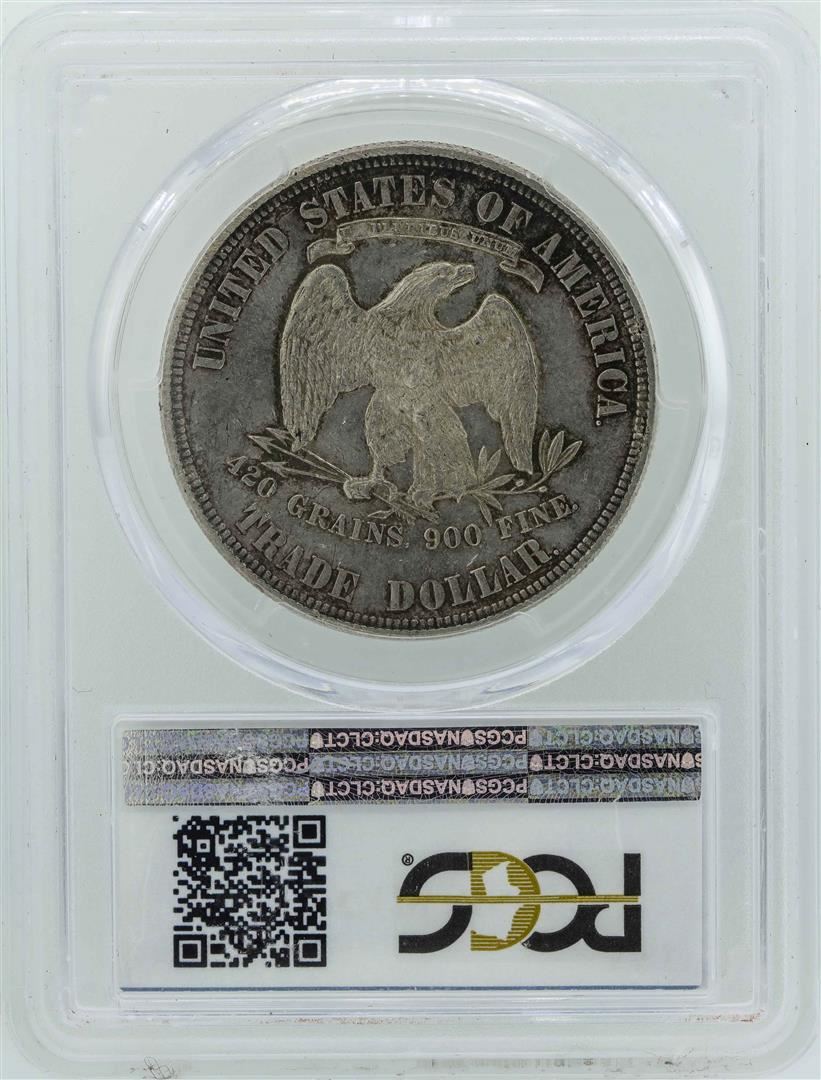 One 1877 $1 Seated Liberty Silver Trade Dollar Coin PCGS MS62. PCGS Graded.