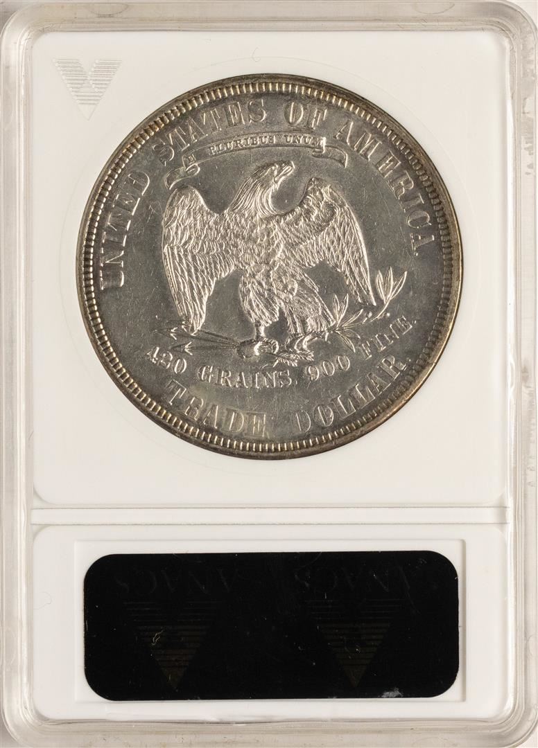 One 1877 $1 Trade Silver Dollar Coin ANACS AU58. ANACS Certified.