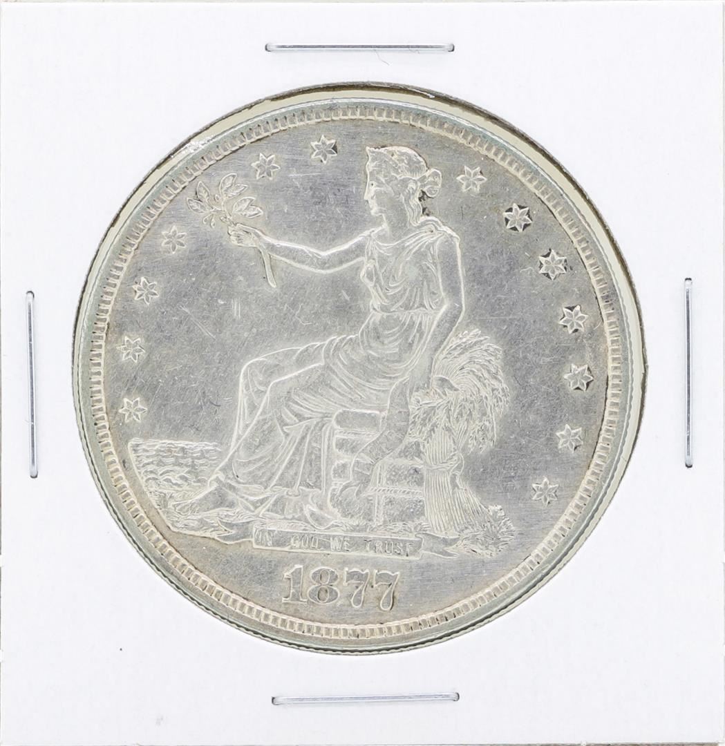 One 1877 $1 Trade Silver Dollar Coin.