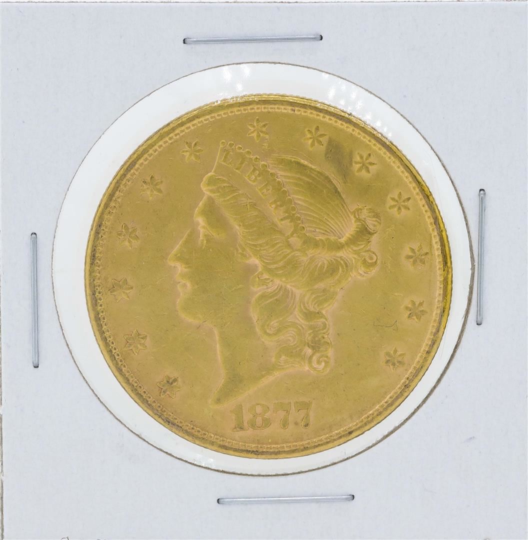One 1877 $20 Liberty Head Double Eagle Gold Coin.