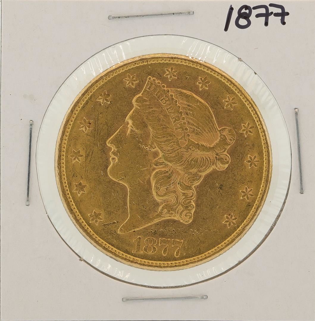 One 1877 $20 Liberty Head Double Eagle Gold Coin.