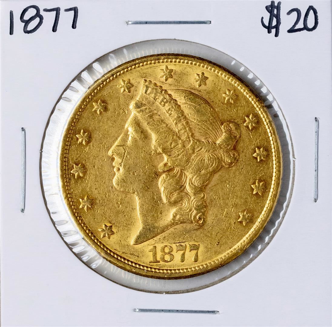 One 1877 $20 Liberty Head Double Eagle Gold Coin.