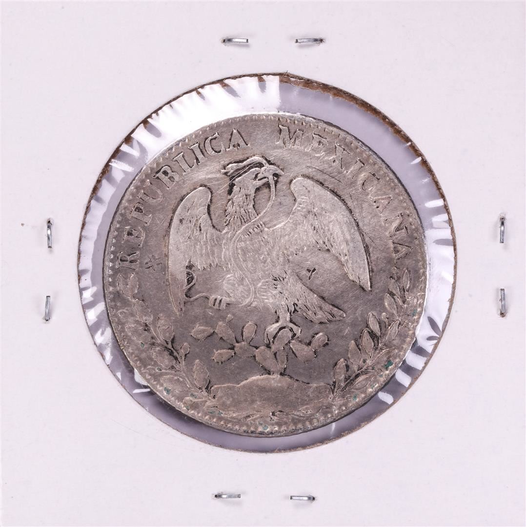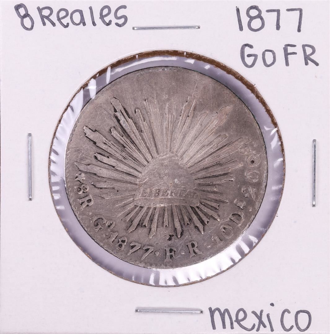 One 1877 Go FR Mexico 8 Reales Silver Coin.