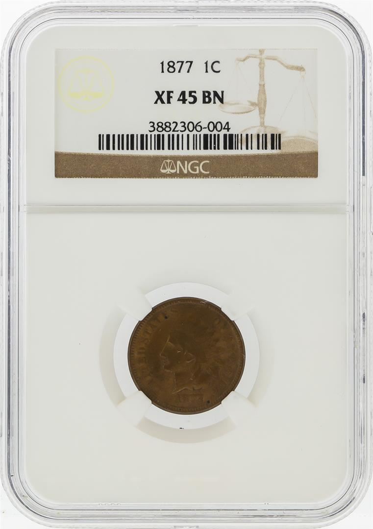 One 1877 Indian Head Cent NGC Graded XF45BN. NGC Certified.