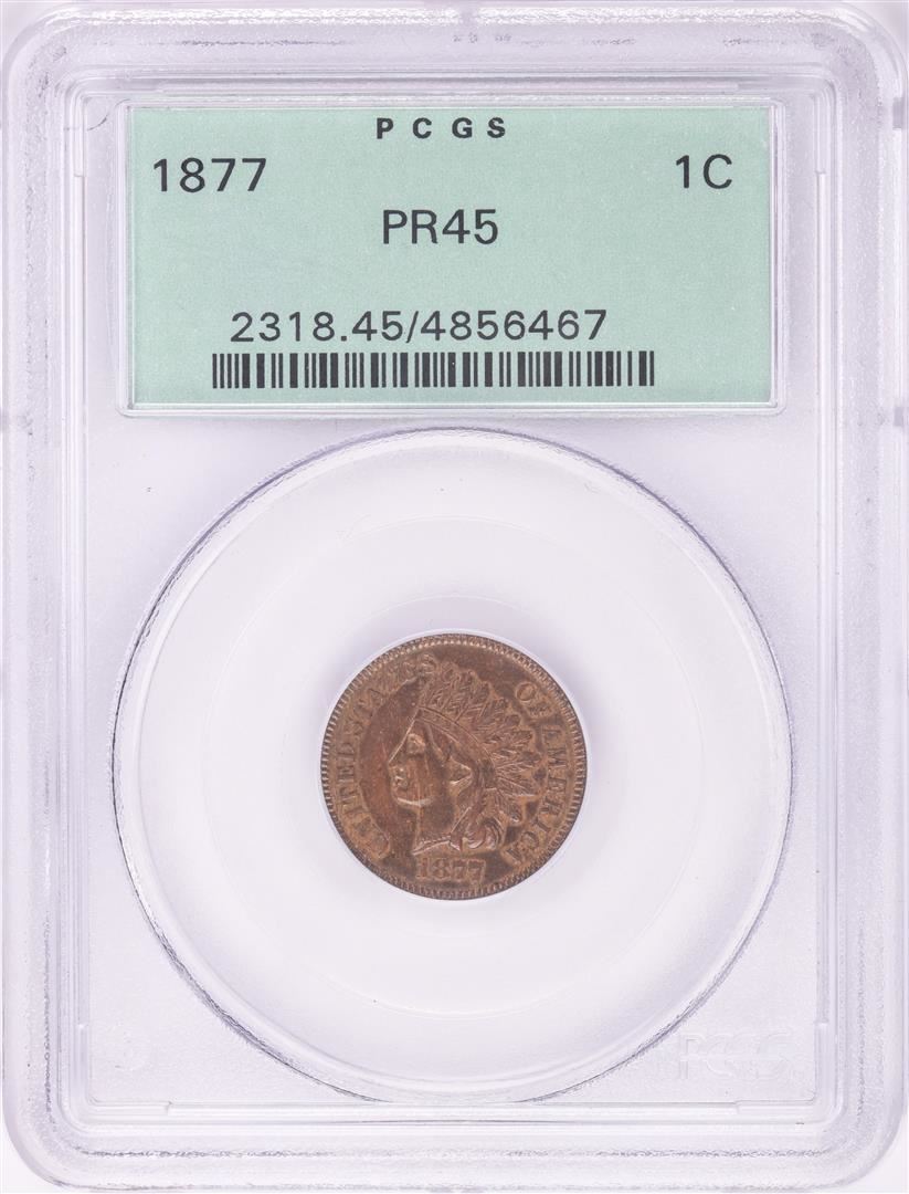 One 1877 Proof Indian Head Cent Coin PCGS PR45 Old Green Holder. PCGS Graded.
