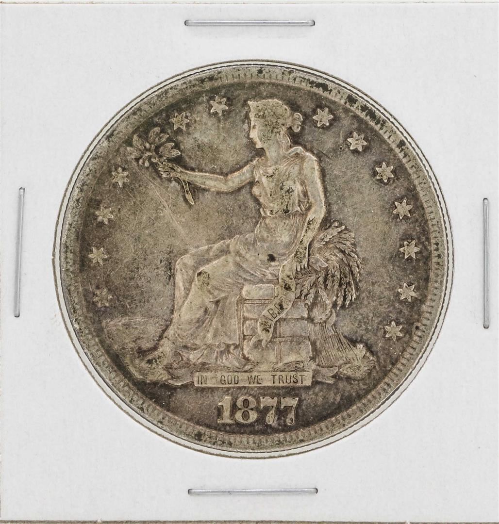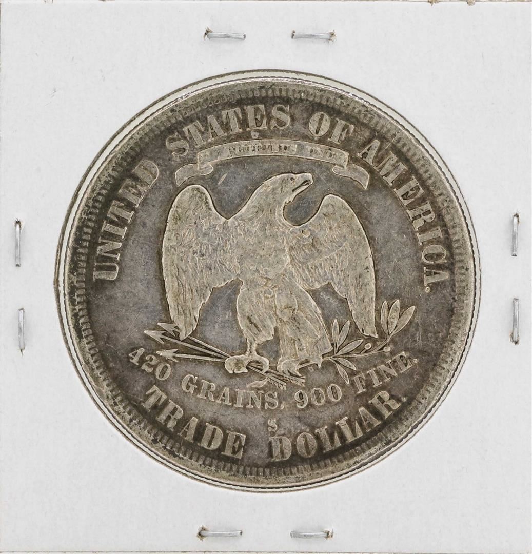 One 1877-S $1 Seated Liberty Silver Trade Dollar Coin.
