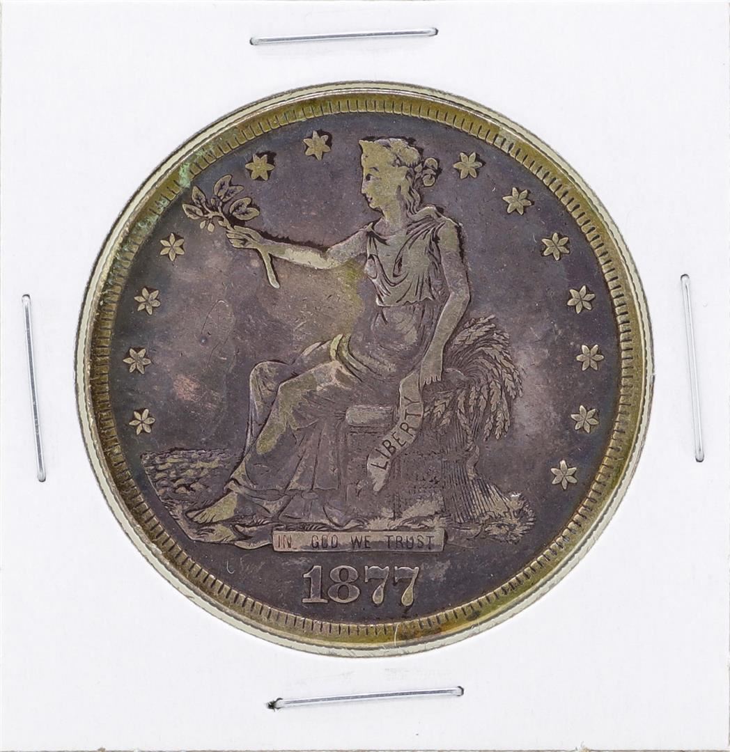 One 1877-S $1 Trade Dollar Silver Coin.