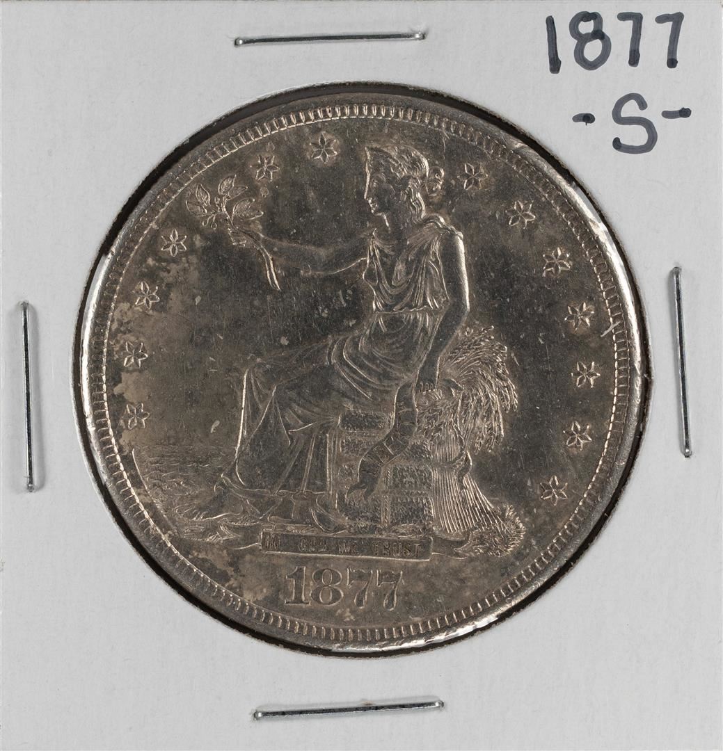 One 1877-S $1 Trade Silver Dollar Coin.