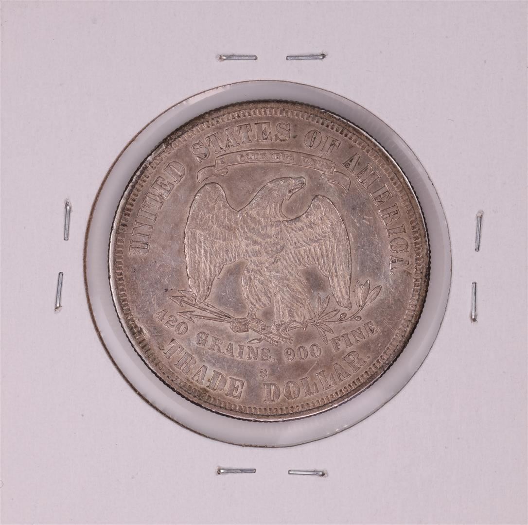 One 1877-S $1 Trade Silver Dollar Coin.