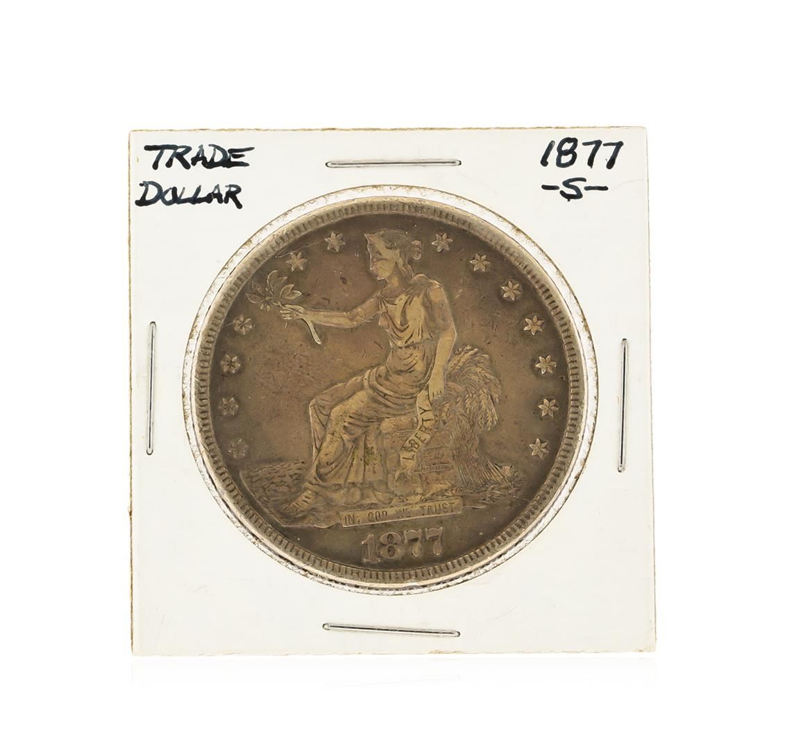 One 1877-S $1 U.S. Trade Silver Dollar.