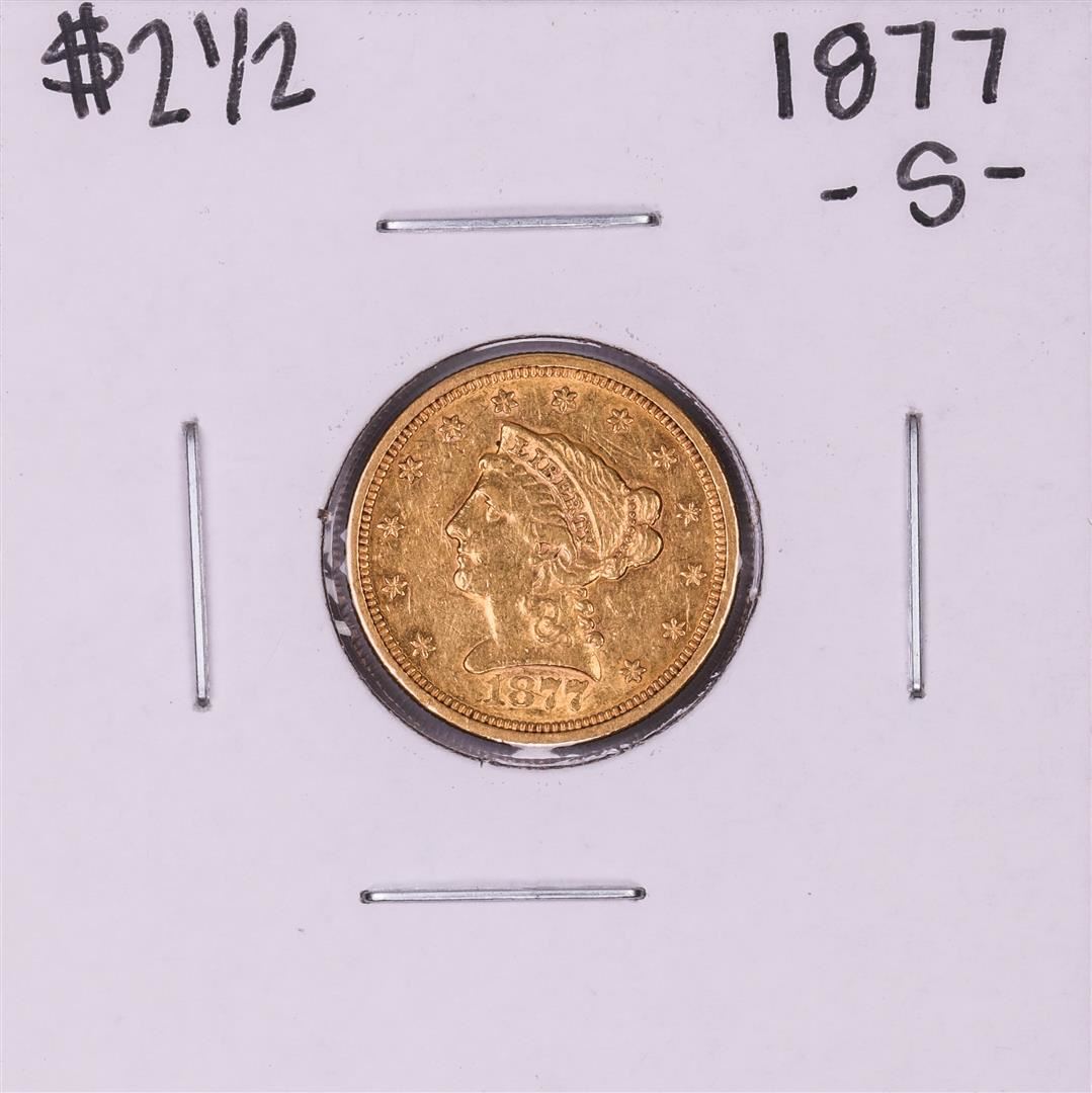 One 1877-S $2 1/2 Liberty Head Quarter Eagle Gold Coin.