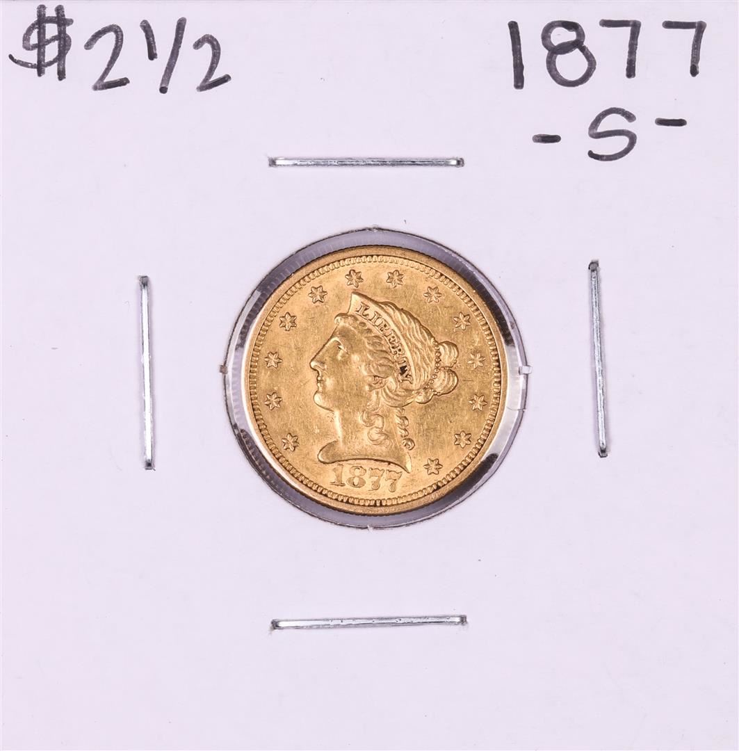 One 1877-S $2 1/2 Liberty Head Quarter Eagle Gold Coin.
