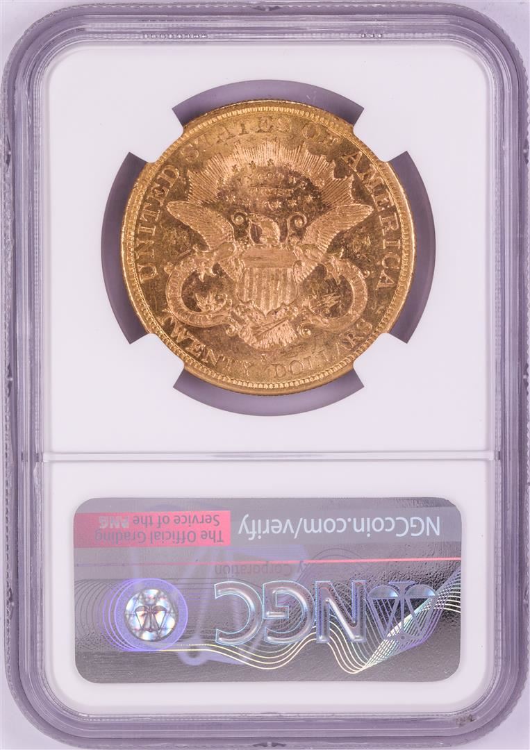 One 1877-S $20 Liberty Head Double Eagle Gold Coin NGC AU58. NGC Certified.