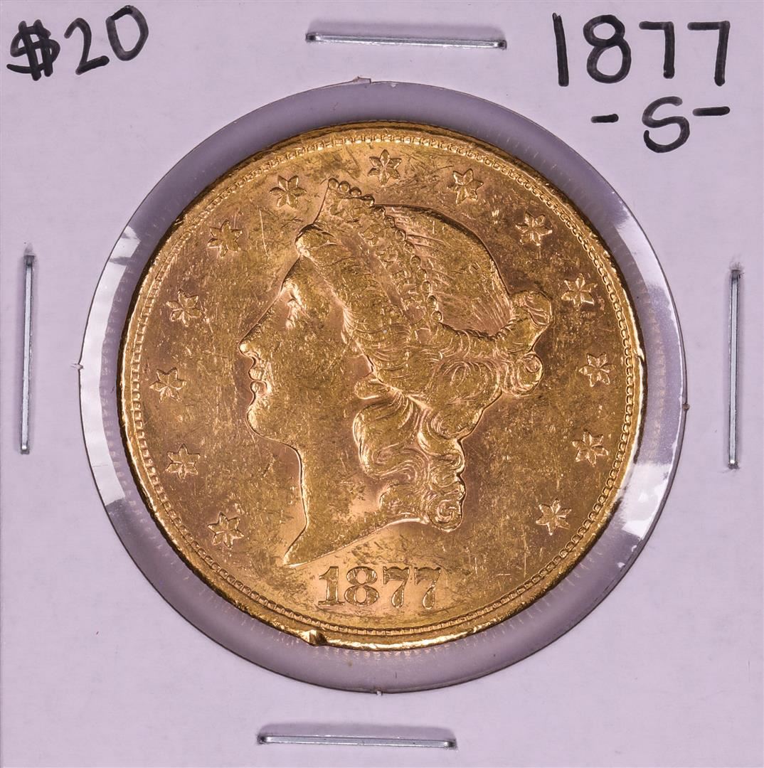 One 1877-S $20 Liberty Head Double Eagle Gold Coin.