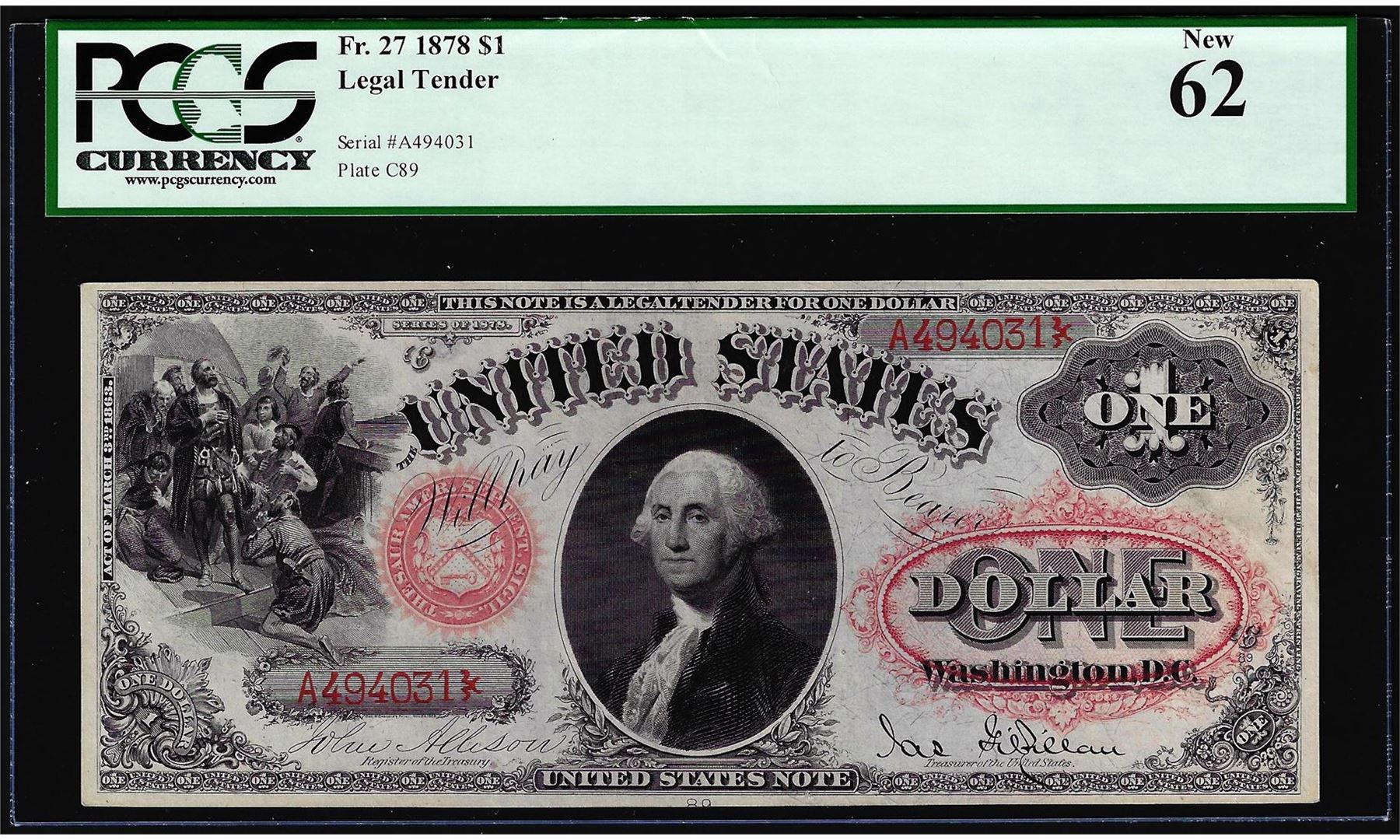 One 1878 $1 Legal Tender Note Fr.27 PCGS New 62. PCGS Graded.