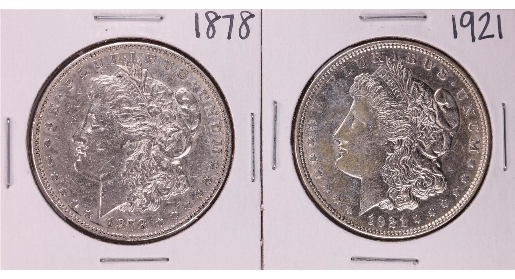 1878 & 1921 First & Last Year $1 Morgan Silver Dollar Coin Set