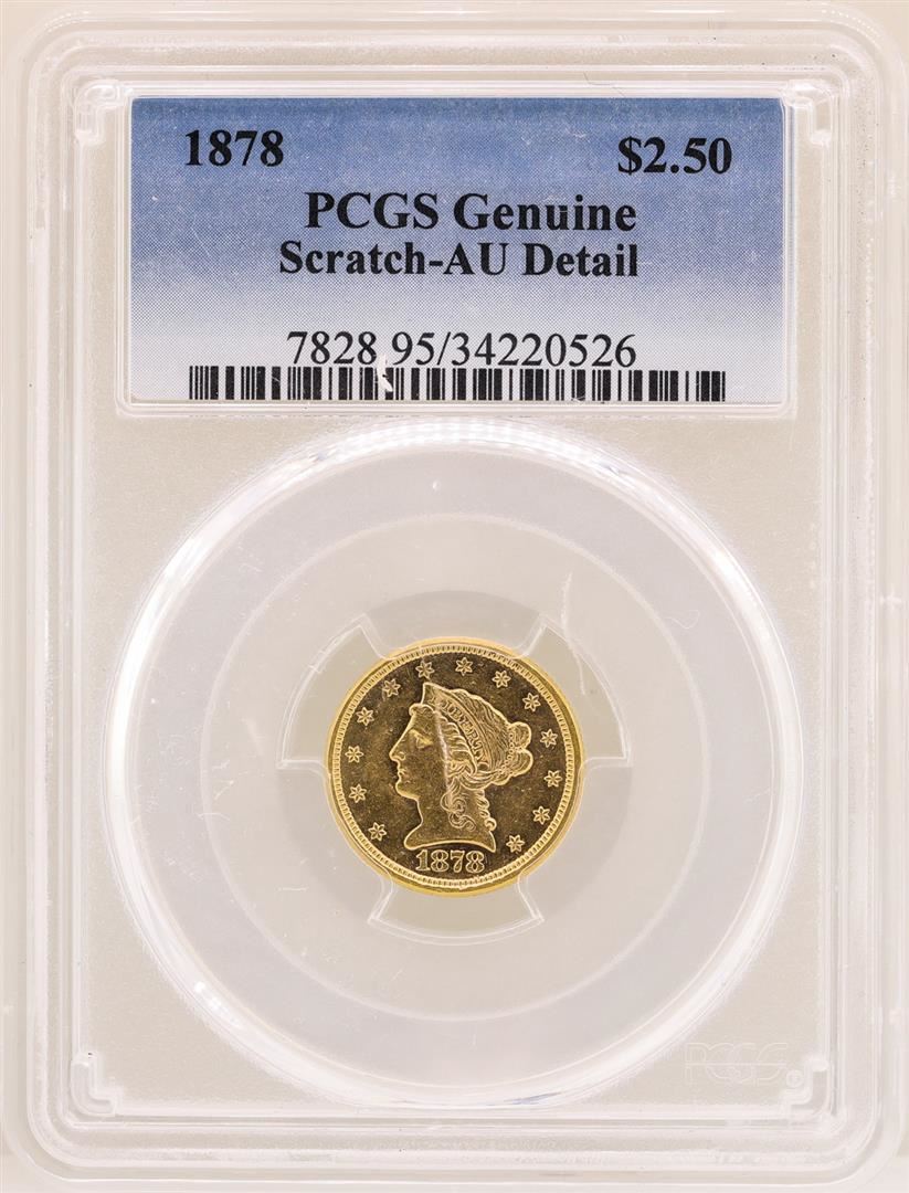 One 1878 $2 1/2 Liberty Head Quarter Eagle Coin PCGS AU Detail. PCGS Graded.