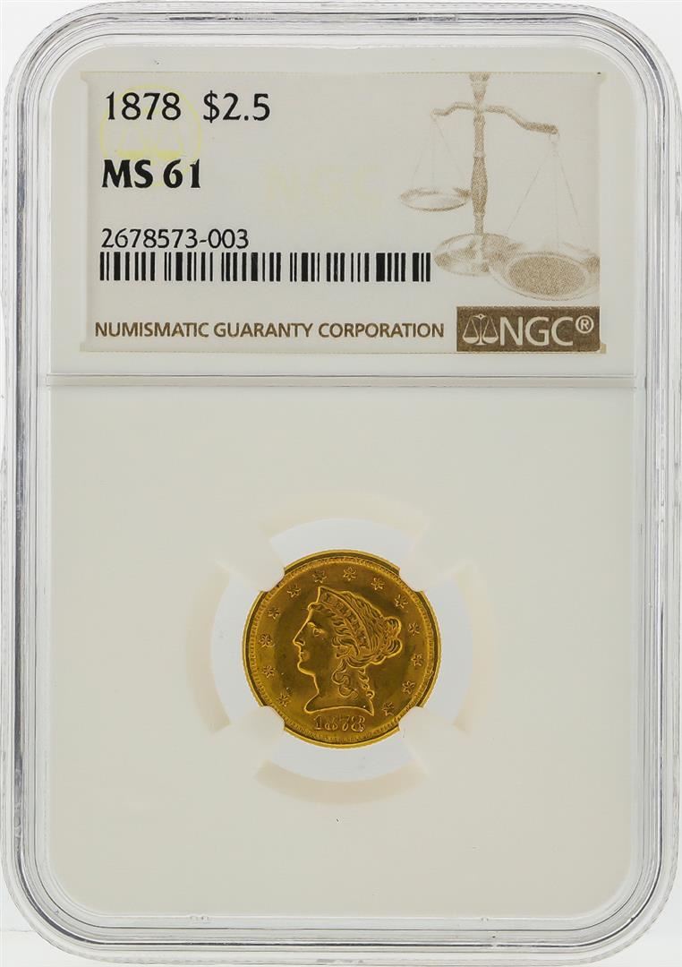 One 1878 $2 1/2 Liberty Head Quarter Eagle Gold Coin NGC MS61. NGC Certified.
