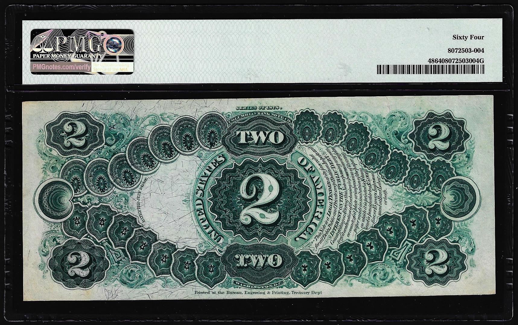 One 1878 $2 Legal Tender Note Fr.48 PMG Choice Uncirculated 64. PMG Certified.