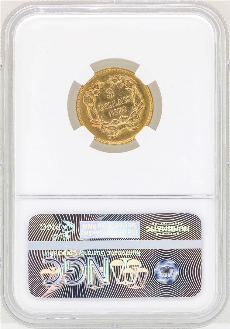 One 1878 $3 Indian Princess Head Gold Coin NGC AU55. NGC Certified.