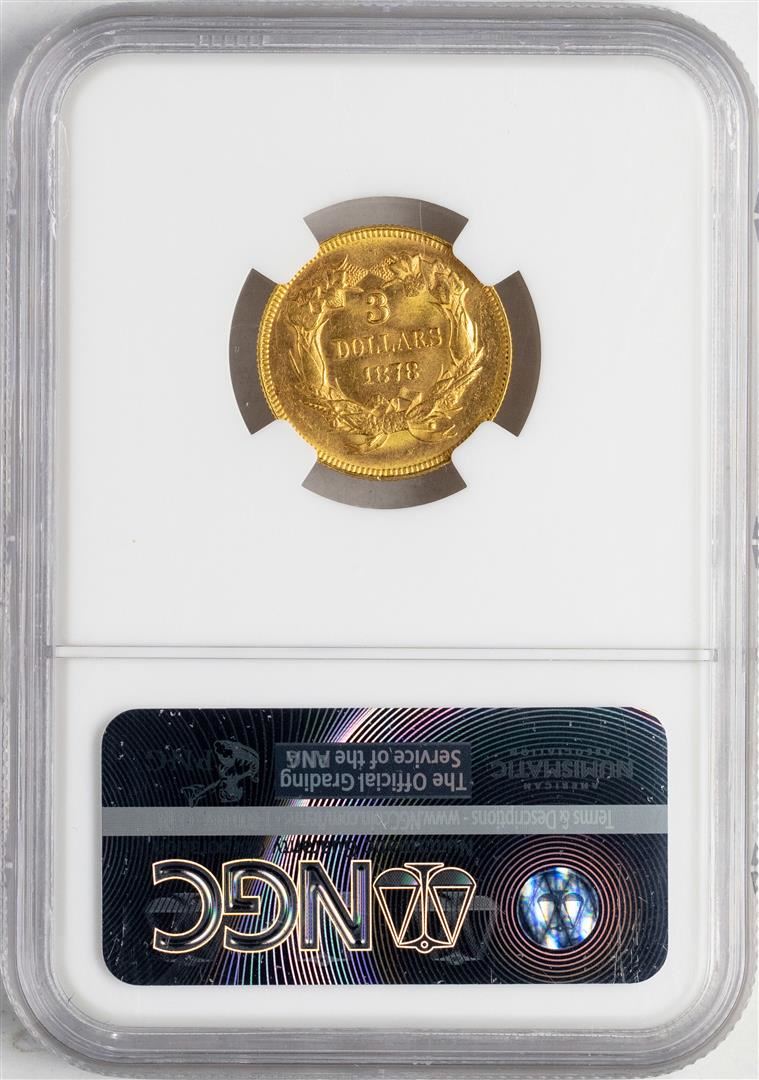 One 1878 $3 Indian Princess Head Gold Coin NGC MS63. NGC Certified.