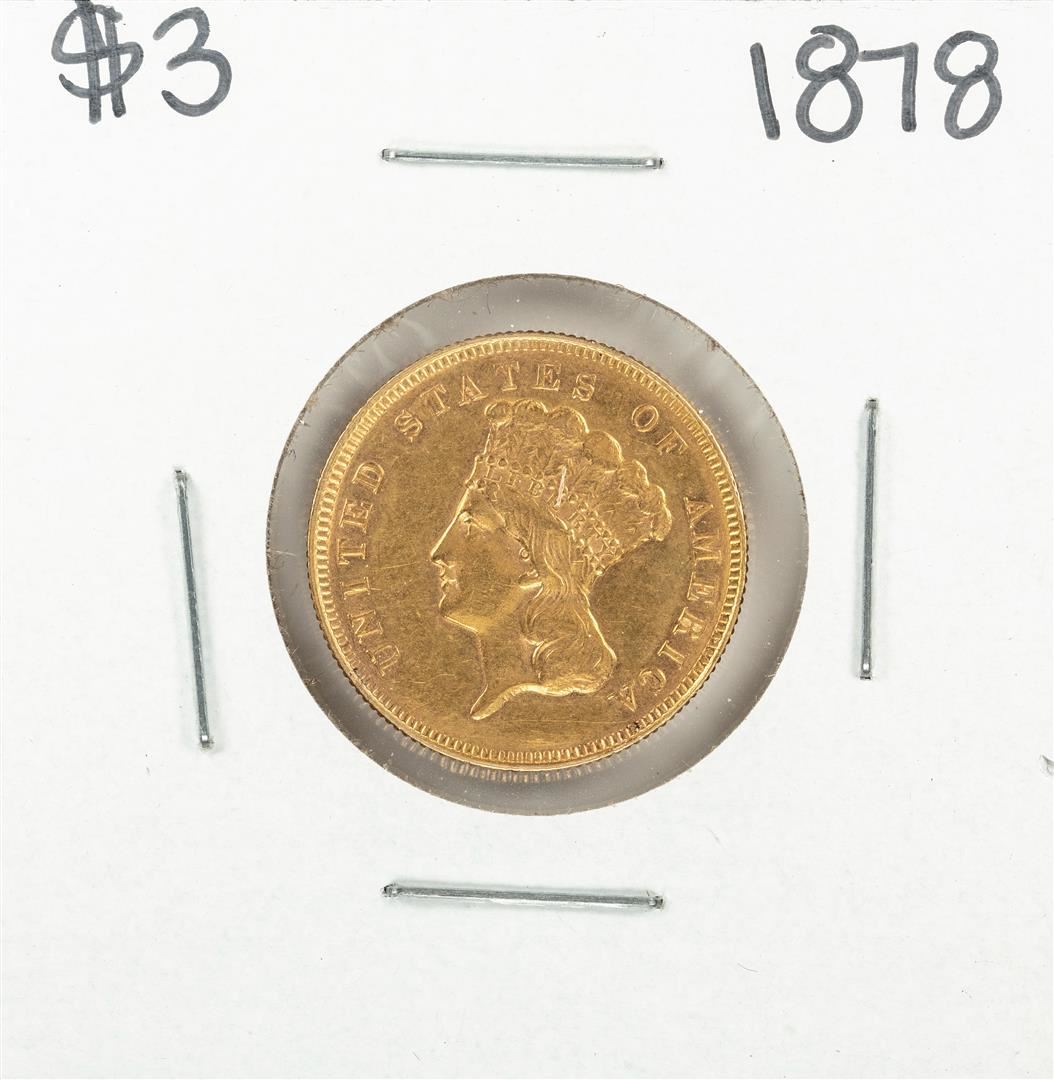 One 1878 $3 Indian Princess Head Gold Coin.