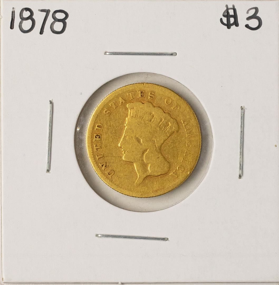 One 1878 $3 Indian Princess Head Gold Dollar Coin.