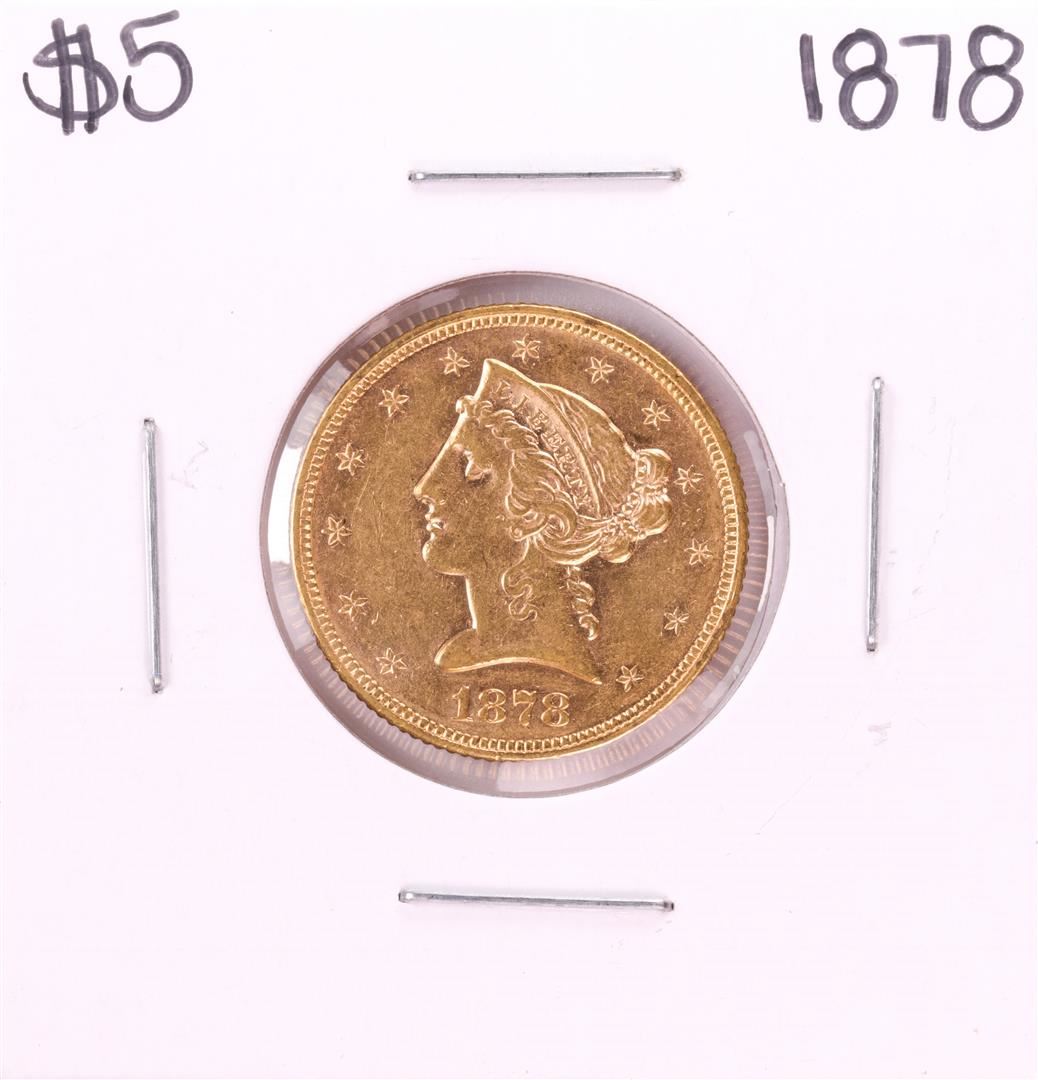 One 1878 $5 Liberty Head Half Eagle Gold Coin.